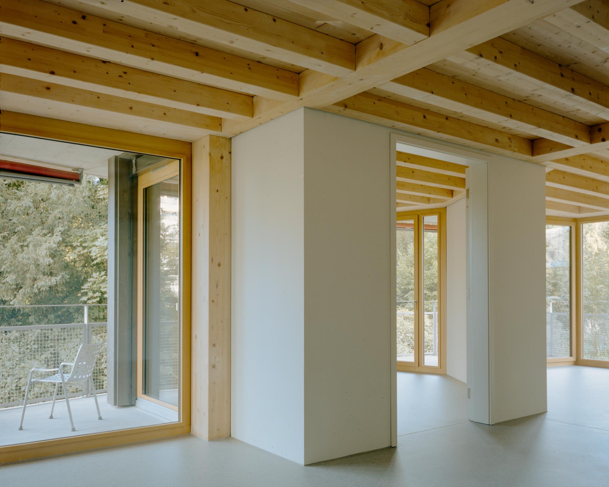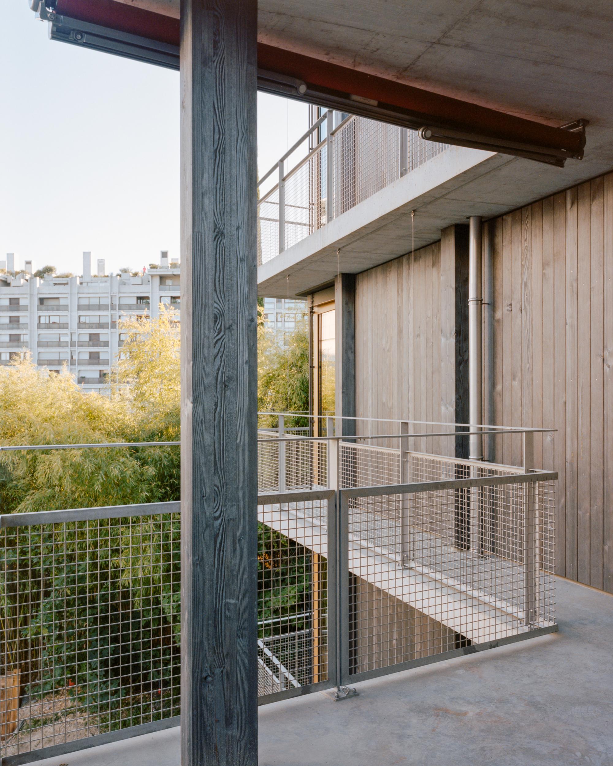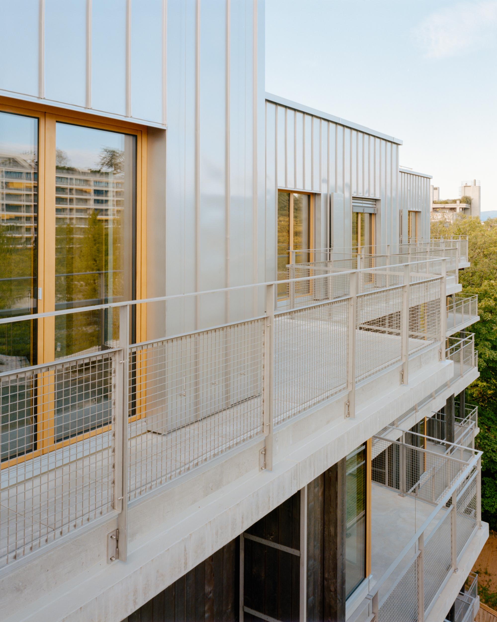 Dans le but de minimiser l’impact écologique, un recours intensif au matériau bois est privilégié notamment pour la façade, les balcons et les planchers des étages.
